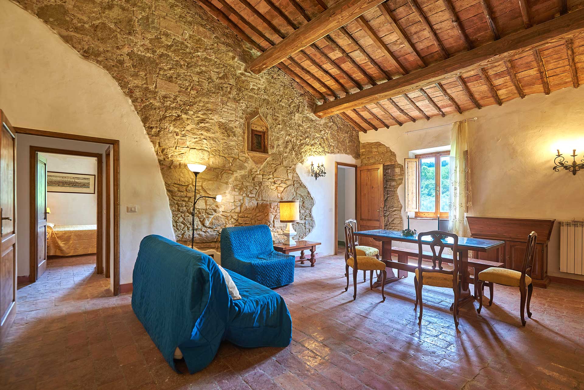 ha nove appartamenti di diverse metrature: alcuni, quelli al piano terra, sono dotati di terrazza privata attrezzata e tutti hanno splendidi affacci sulla campagna circostante.