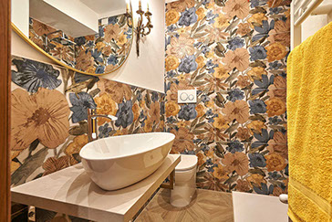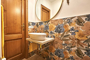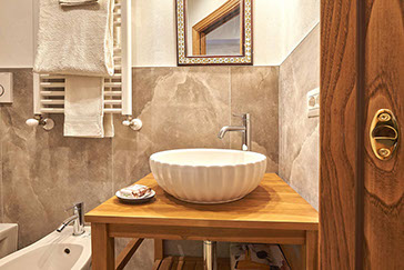 Characteristic features of the apartment are an ancient majolica depicting the Virgin with Child on the wall of the living room and the furniture, which blends tradition and modernity, with vintage and modern items.