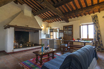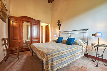 A majestic apartment measuring about 95 square metres, suitable for up to 6 people, located on the first floor and with marvellous views over the swimming pool and the surrounding countryside. The space is dominated by ceilings up to six metres high and the ancient fireplace in the living room, a true hearth which is still working.
