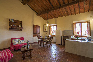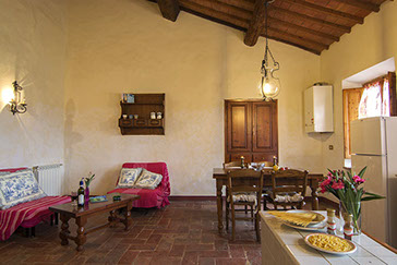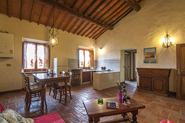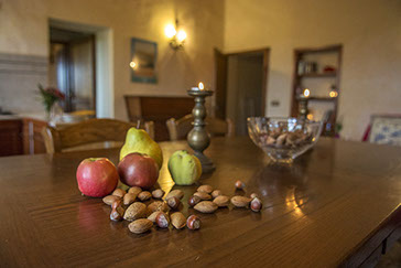 Pavimentazioni in originale cotto toscano coevo all'edificio bagno con doccia struttura dei soffitti con travi di legno e tavelle di cotto.